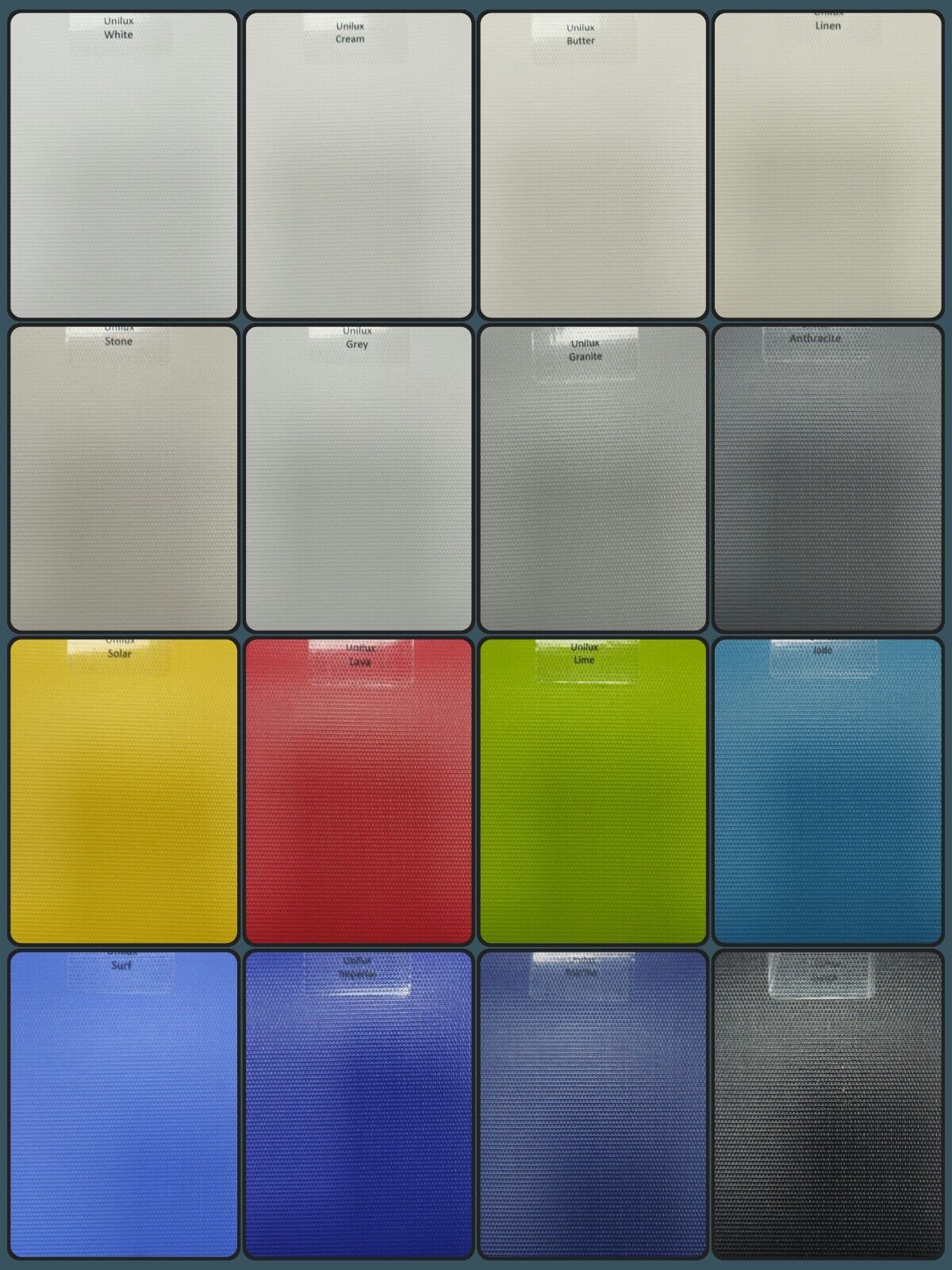 Every effort has been made to make colour swatches above as accurate as possible in average viewing conditions. However there may be variations depending on your computer screen.